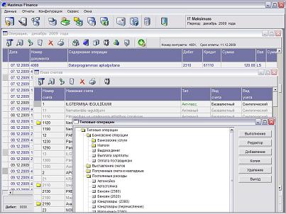 Программа бухгалтерского учета, центральный модуль комплекса. Позволяет вести учет денежных средств, доходов и расходов предприятия, валютных операций, дебеторских и кредиторских задолженностей; создавать формы и отчеты разного вида, назначения и уровня детализации.