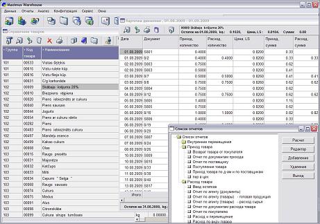 Модуль, обеспечивающий ведение учета товаров, материалов и услуг. Программа позволяет обрабатывать несколько складов, магазинов, торговых точек; осуществлять операции прихода, расхода, резервации, перемещения и возврата товаров; производить инвентаризацию; распечатывать различные формы товарно-транспортных накладных, актов, счетов и прочих сопроводительных документов. Система может также моделировать производство.